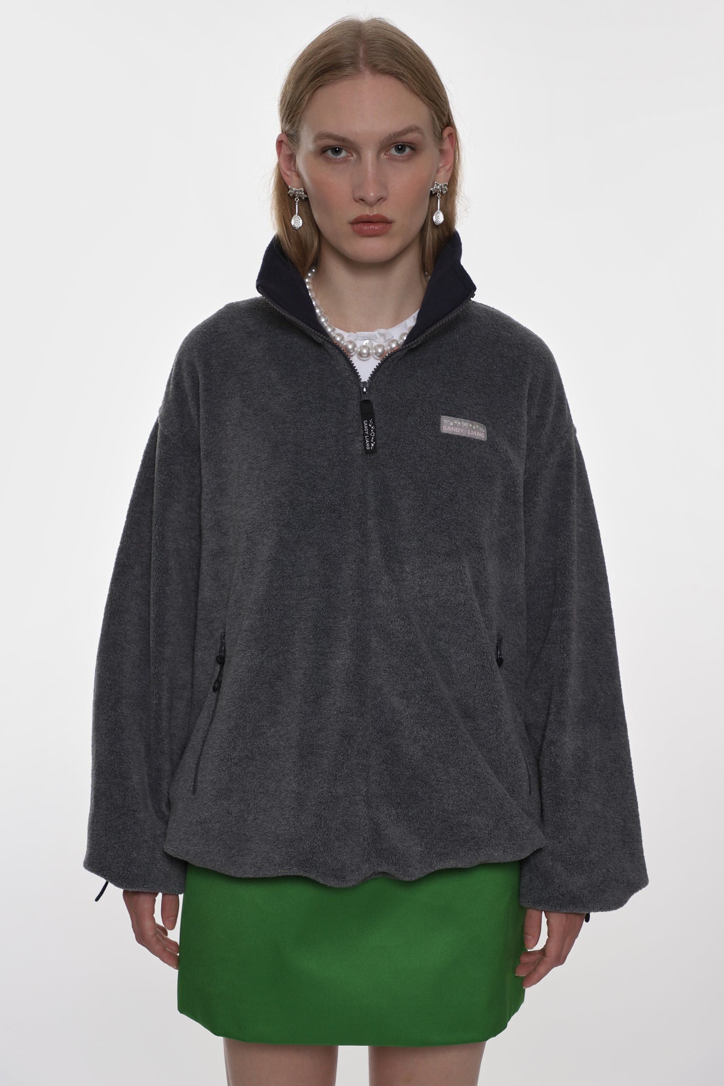 Oversized pullover in Grey Polar FleeceFeatures exposed zippers throughoutElasticated drawcord details at sleeves and hemConstrast binding at neck