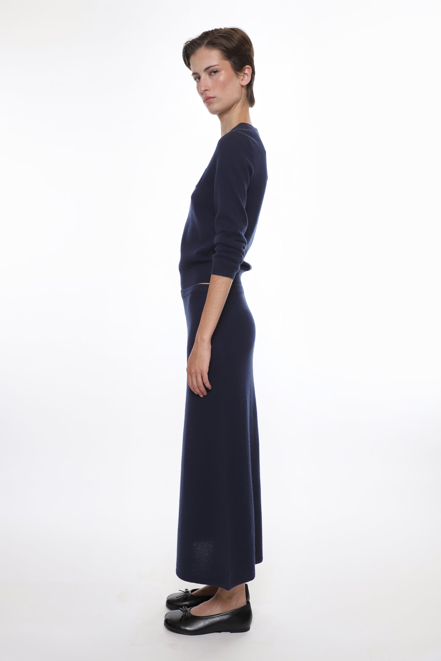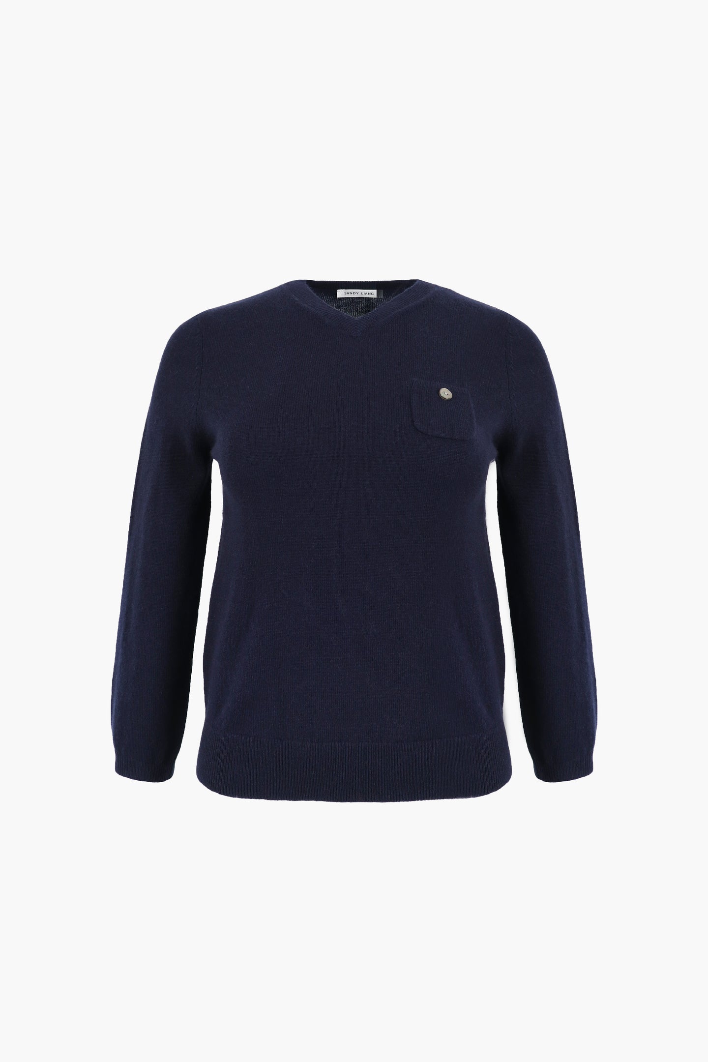 Shrunken v-neck sweater in NavyFeatures mini pocket at chestMother of Pearl buttonMade with a cashmere blend yard