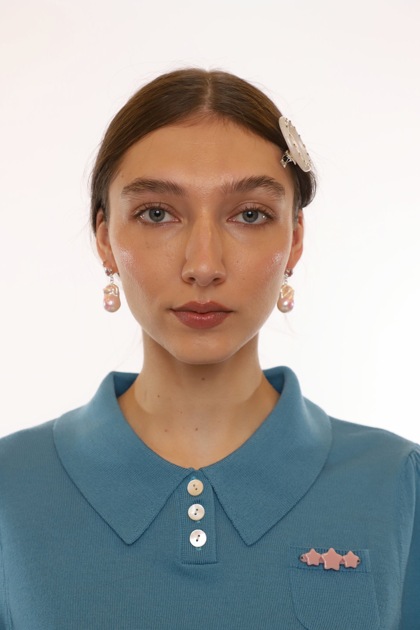 Pearl drop earrings Features a painted bunnyCubic Zirconia bezel set studs