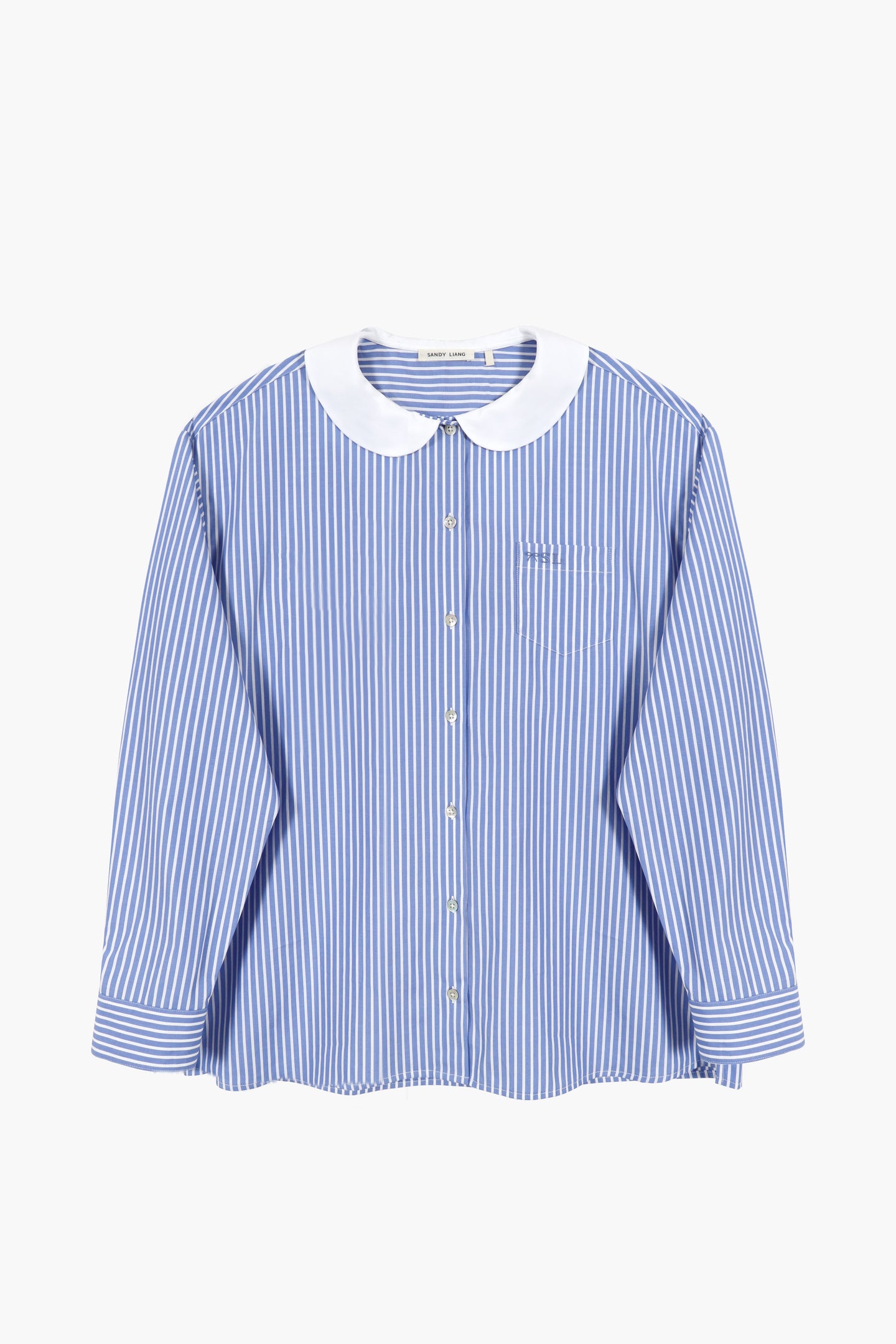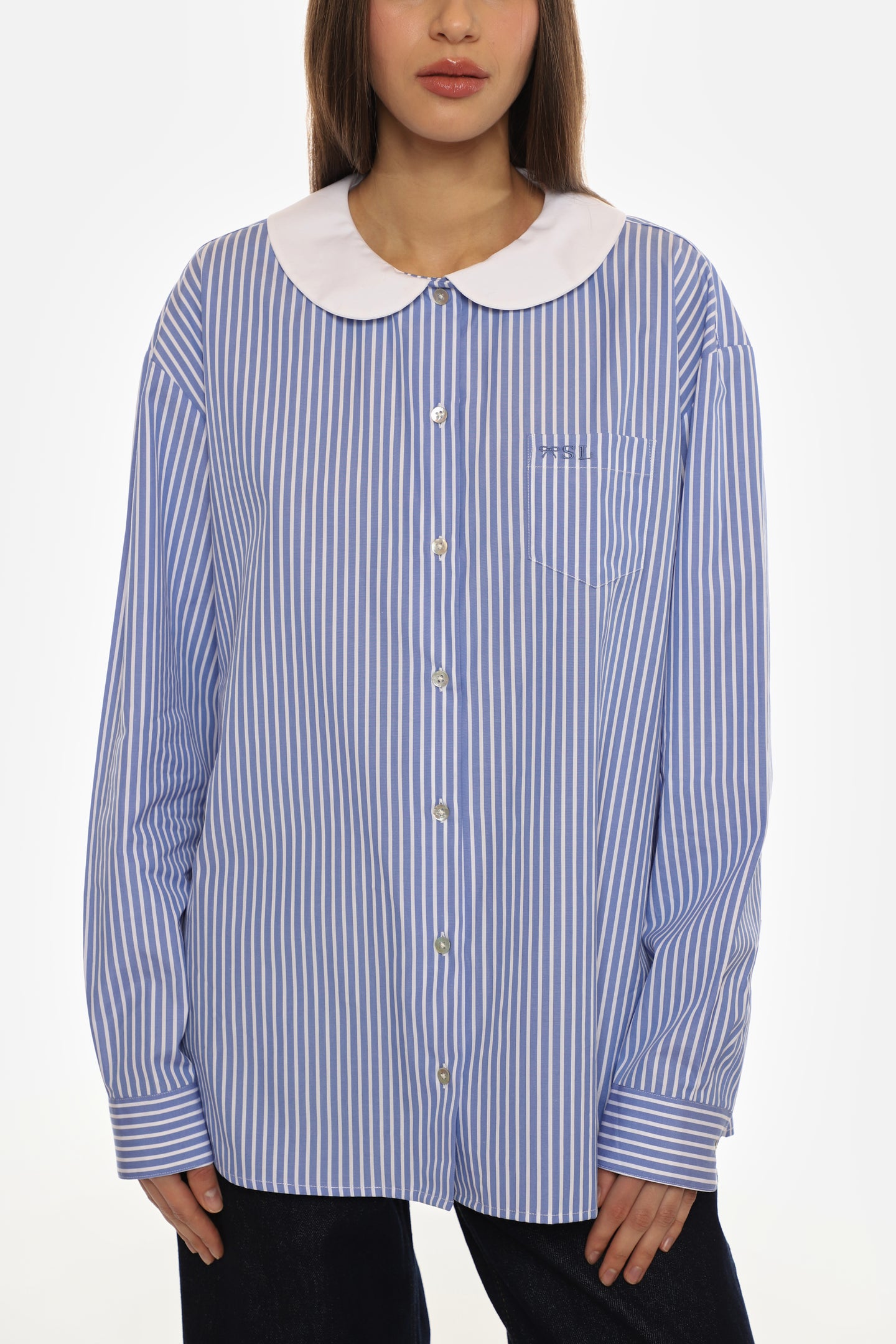 Oversized button down shirt in Blue Stripe Contrast Peter Pan collar Embroidery at chest pocket Unisex fit