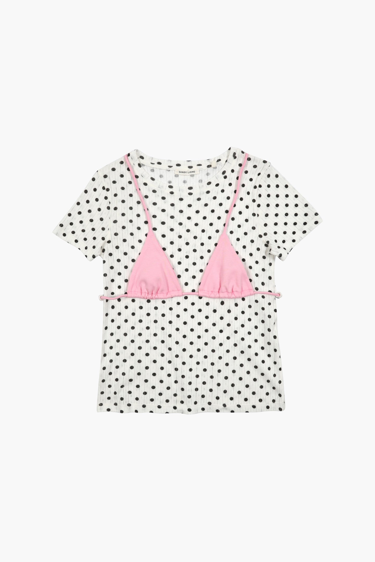 Available for preorder. Ships in late December. Orders with multiple items ship together when this item is availableFitted baby tee in Polka Dot Cotton jerseyBuilt in bikini braletteAdjustable ties at back and neck