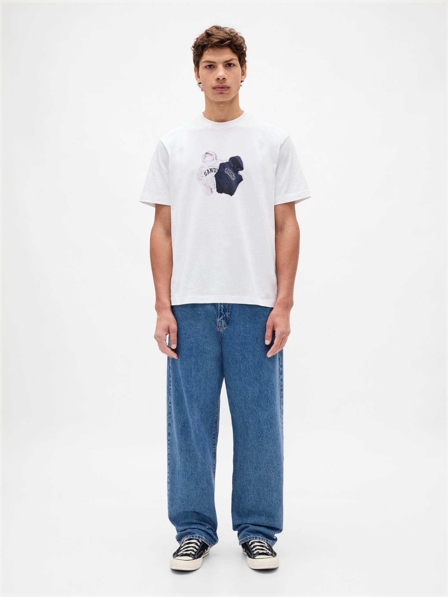 Sandy Liang x GapOur collaboration draws from memories of growing up with Gap. Archival hints. Playful details for adults. Elevated designs for kids. A celebration of modern girlhood. Oversized t-shirt in WhiteFeatures collaboration graphic at chestMade in a heavy weight organic cotton jerseyUnisex fitFinal Sale. Limit One Per Person