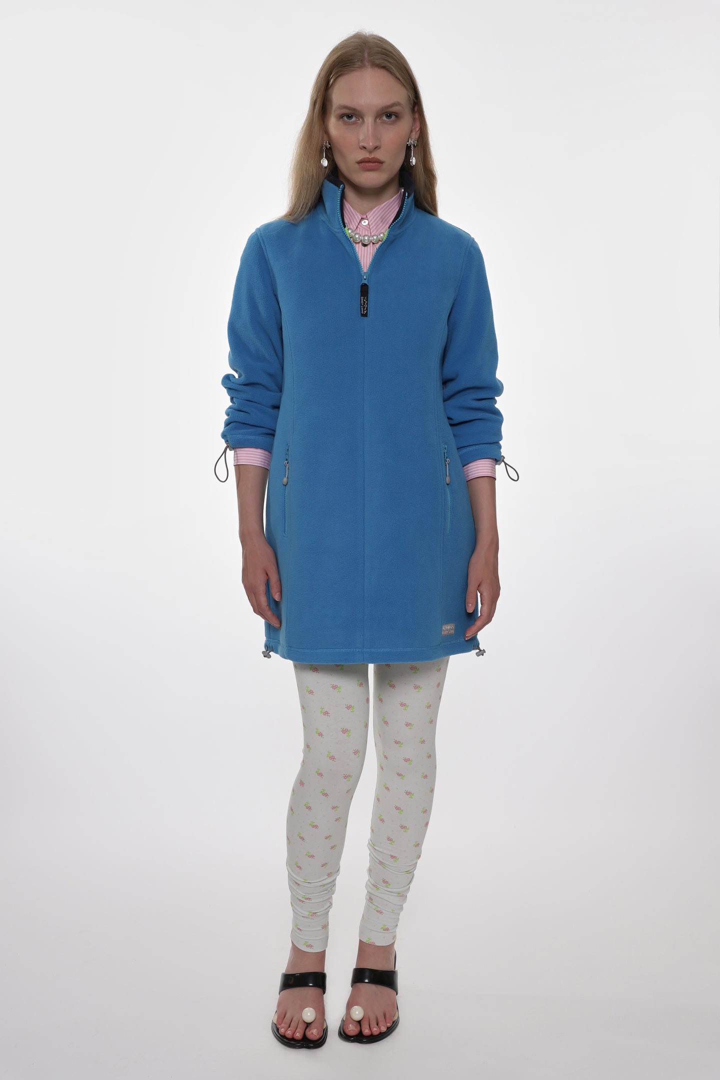 Mini dress in Blue Polar FleeceContrast binding at neckElasticated drawcord details at sleeves and hem