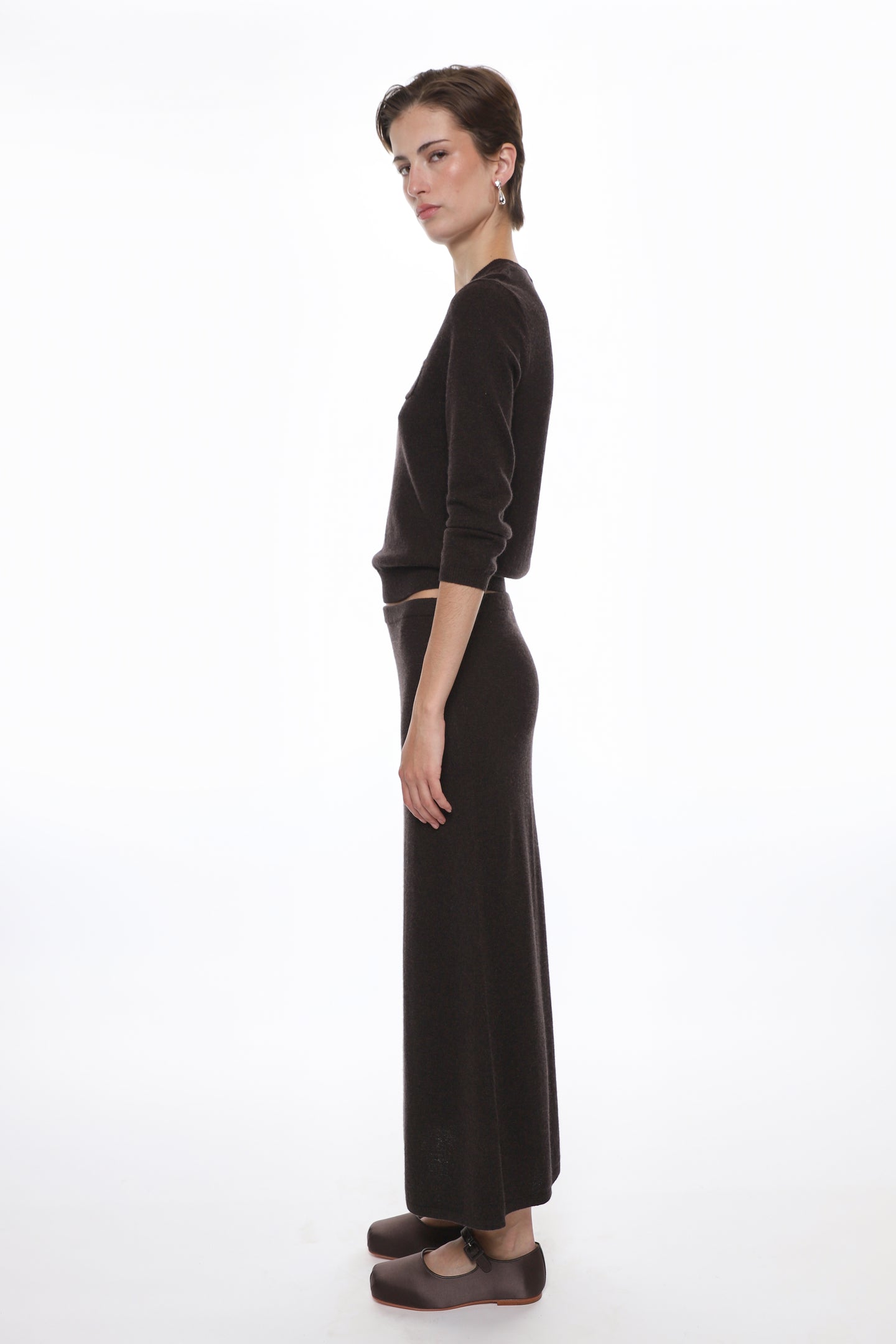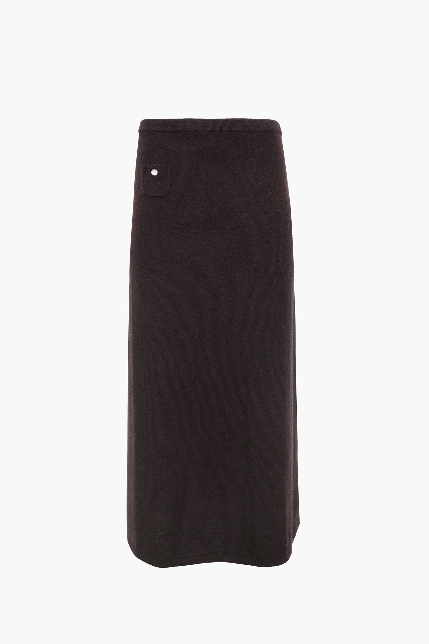 Long straight skirt in Brown cashmereFeatures mini pocket at hipMother of Pearl buttonMade with a cashmere blend yarnElasticated at waist