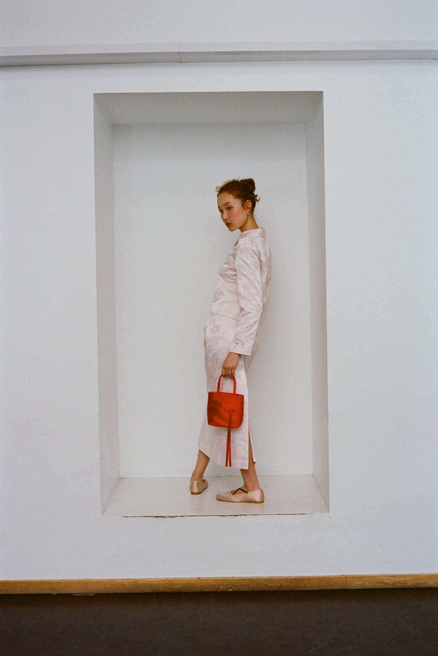 Top handle bag in LipstickMade in a heavyweight satin Welt pocket and mini bow detail Zip closureFINAL SALE