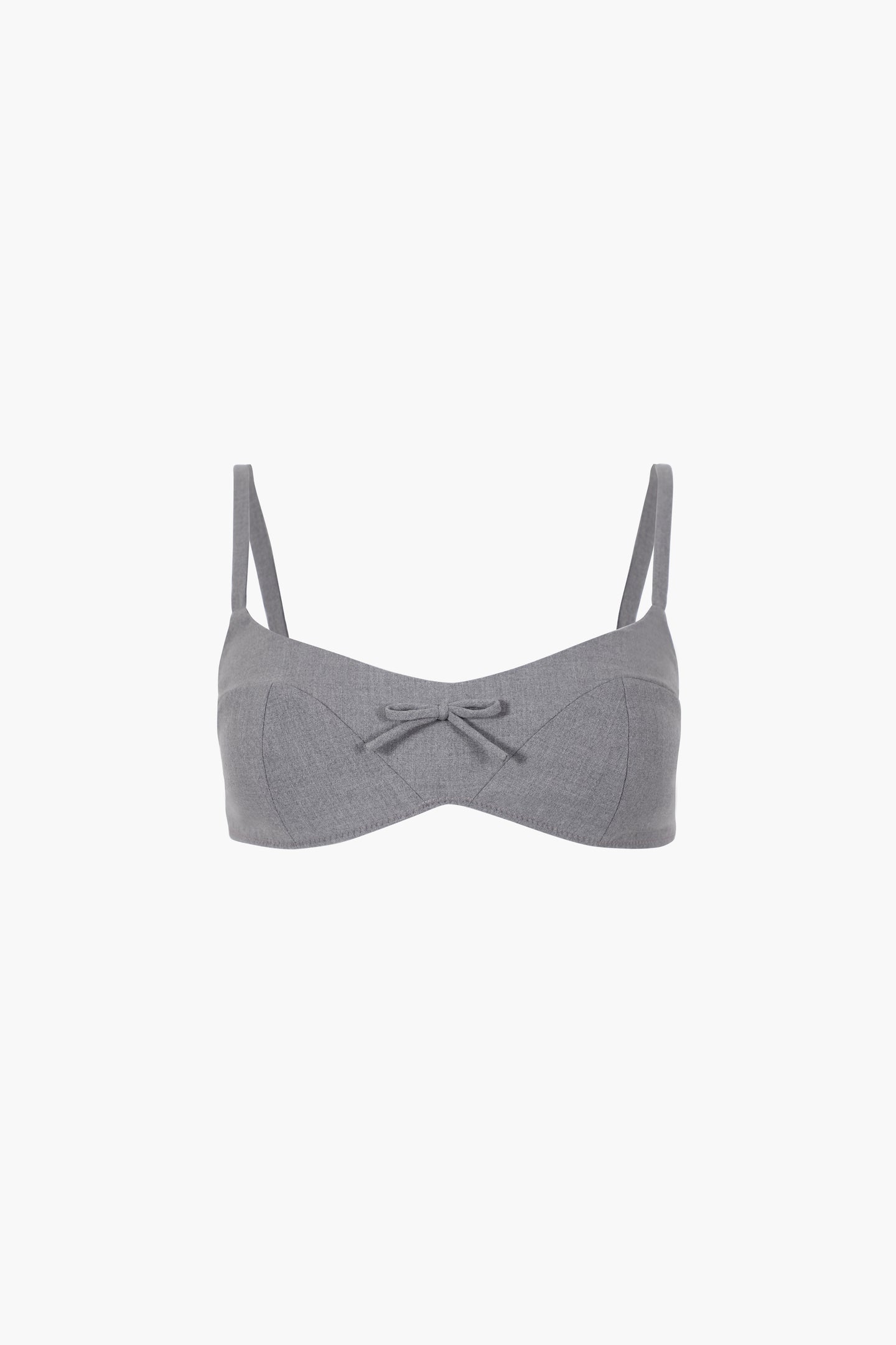 Bra top in Grey Suiting Adjustable strapsClasps at backMade in NYC