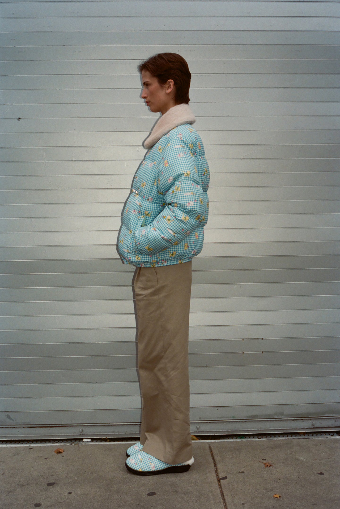 Insulated puffer slippers in Spilled Milk pattern